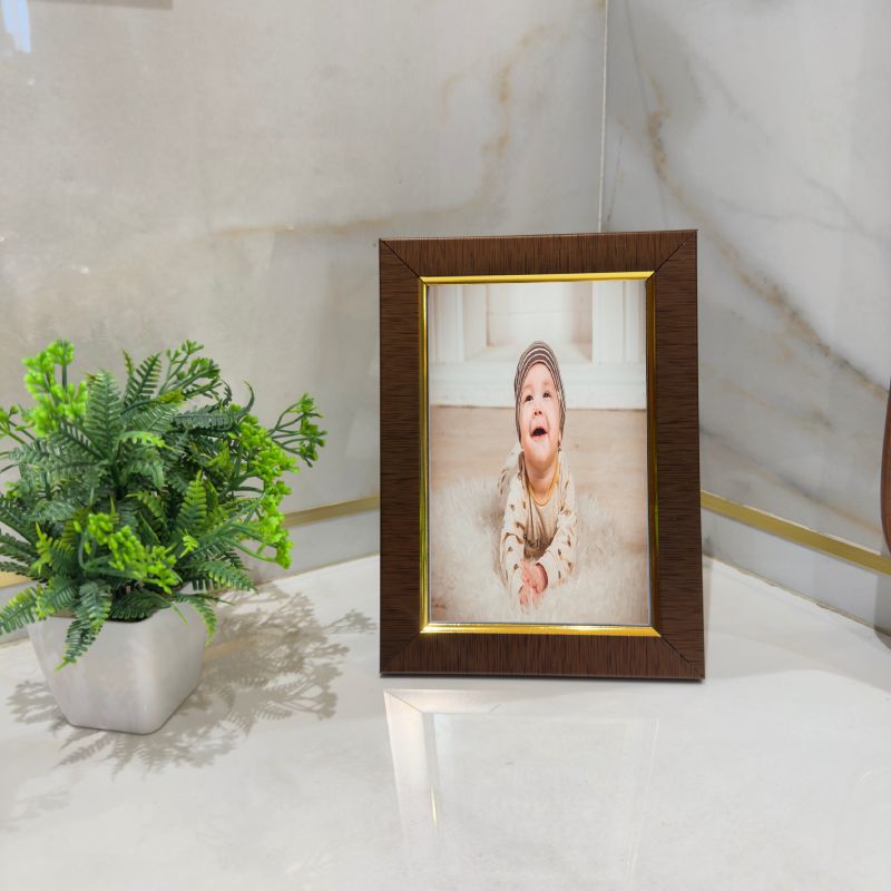 A timeless wooden photo frame with a rich finish, designed to beautifully showcase your cherished 4×6 memories. Perfect for desks, shelves, or side tables.