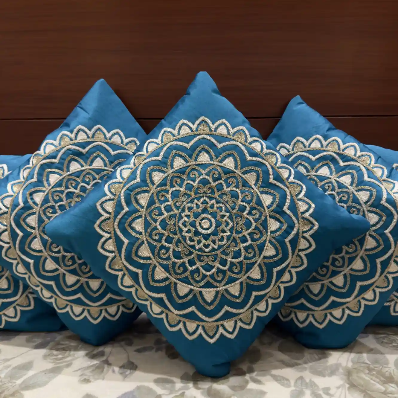 Add a touch of elegance to your living space with this royal blue cushion cover featuring intricate mandala embroidery. Designed to elevate sofas, beds, and lounge areas, it blends modern style with timeless craftsmanship.